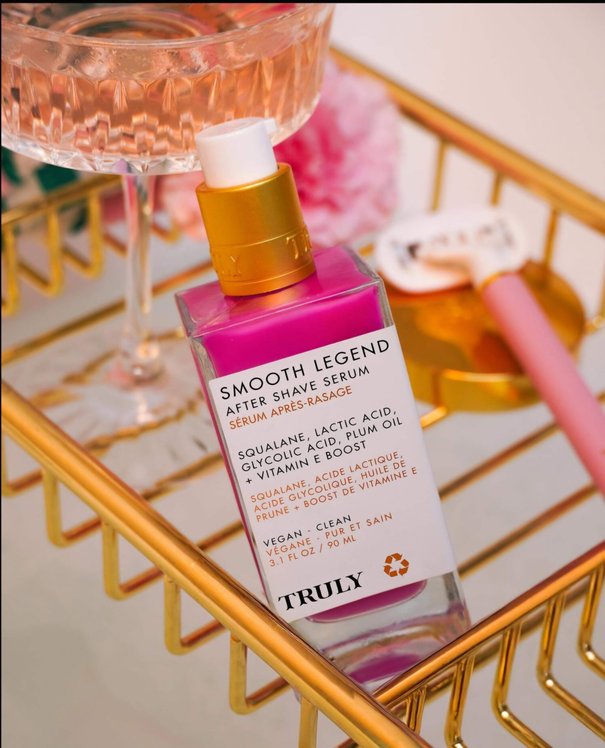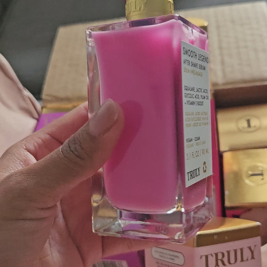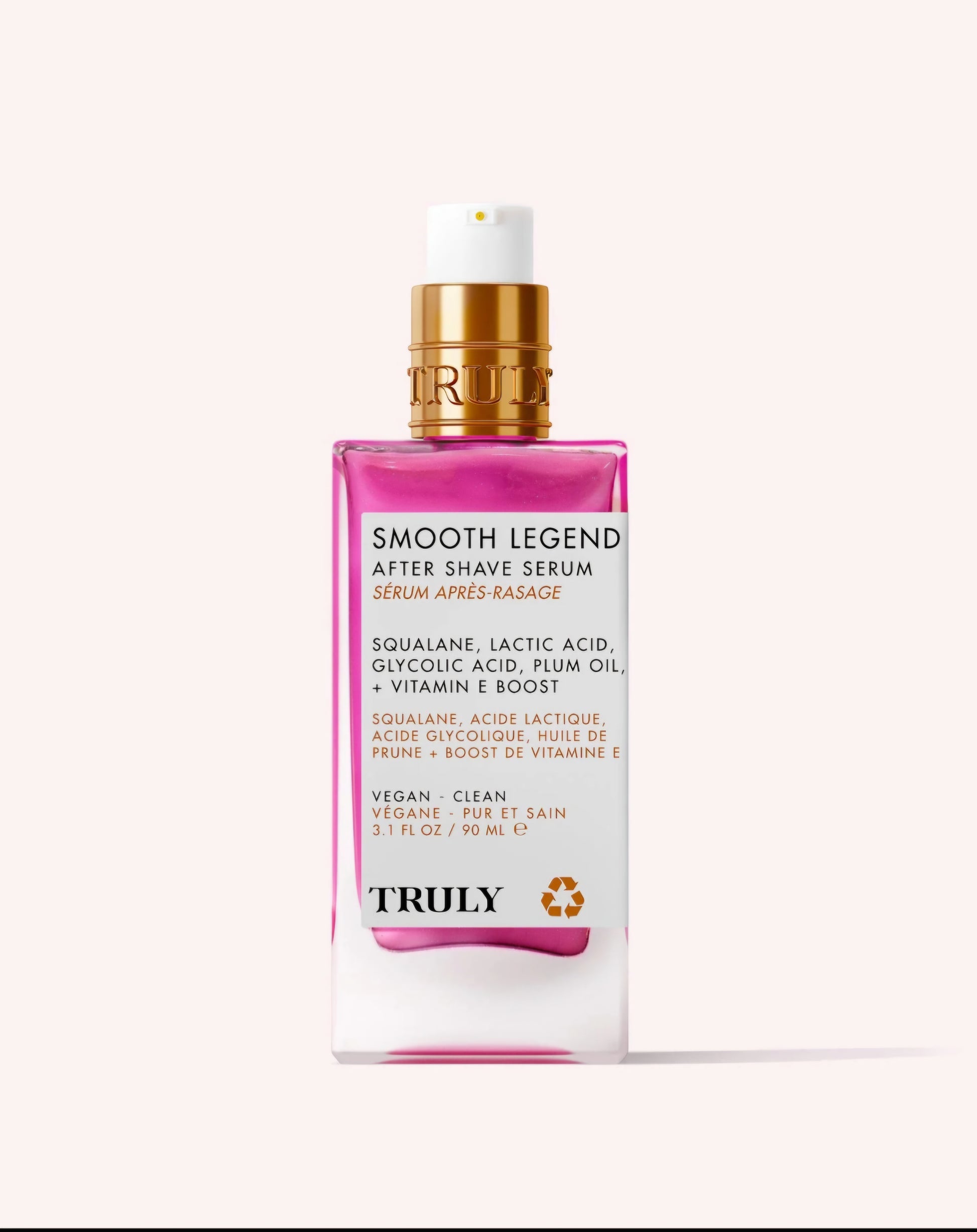 AFTER SHAVE SERUM Un sérum suavizante e hidratante que calma y se siente ligero y elegante, como unas sábanas de satén rosa envolviendo las piernas recién afeitadas. Enriquecido con AHA exfoliantes, el sérum para después del afeitado Smooth Legend combate las células enquistadas y refina la textura de la piel para una piel suave, tersa y radiante.
